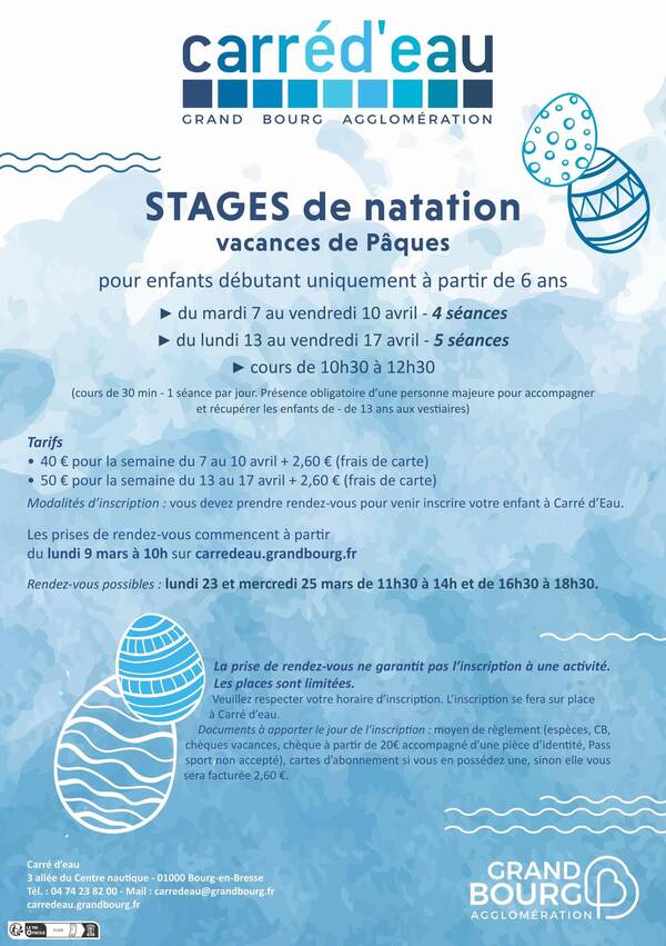 Stages de natation, uniquement destiné aux enfants débutants de 6 à 7 ans ayant une appréhension du milieu aquatique.