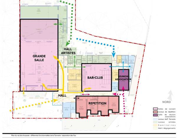 Les locaux administratifs, les zones d’accueil et de répétitions pour les professionnels et les amateurs seront réagencés avec des espaces d’accueil complémentaires.